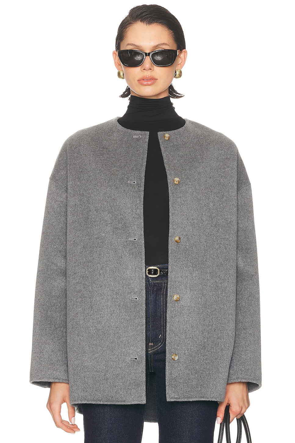 Gray Dunne Wool Drap Short Coat