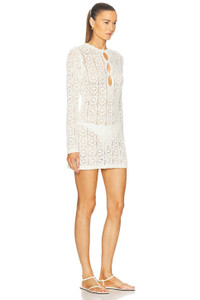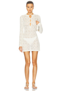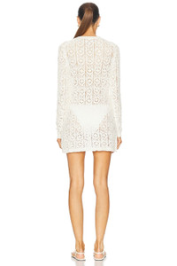 Details - 63% cotton, 25% silk, 12% elastane - Made in China - Hand wash - Unlined - Partial front button closure - Open crochet knit fabric design - Garment is intentionally sheer, undergarments will show through. - Please note undergarment not included - Our Style No. LSUD-WD71 - Manufacturer Style No. EVAN