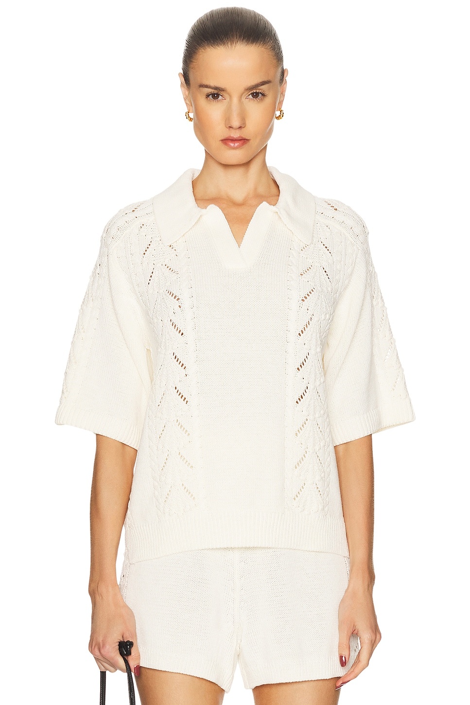 Kina cable and pointelle-knit cotton polo shirt Ivory