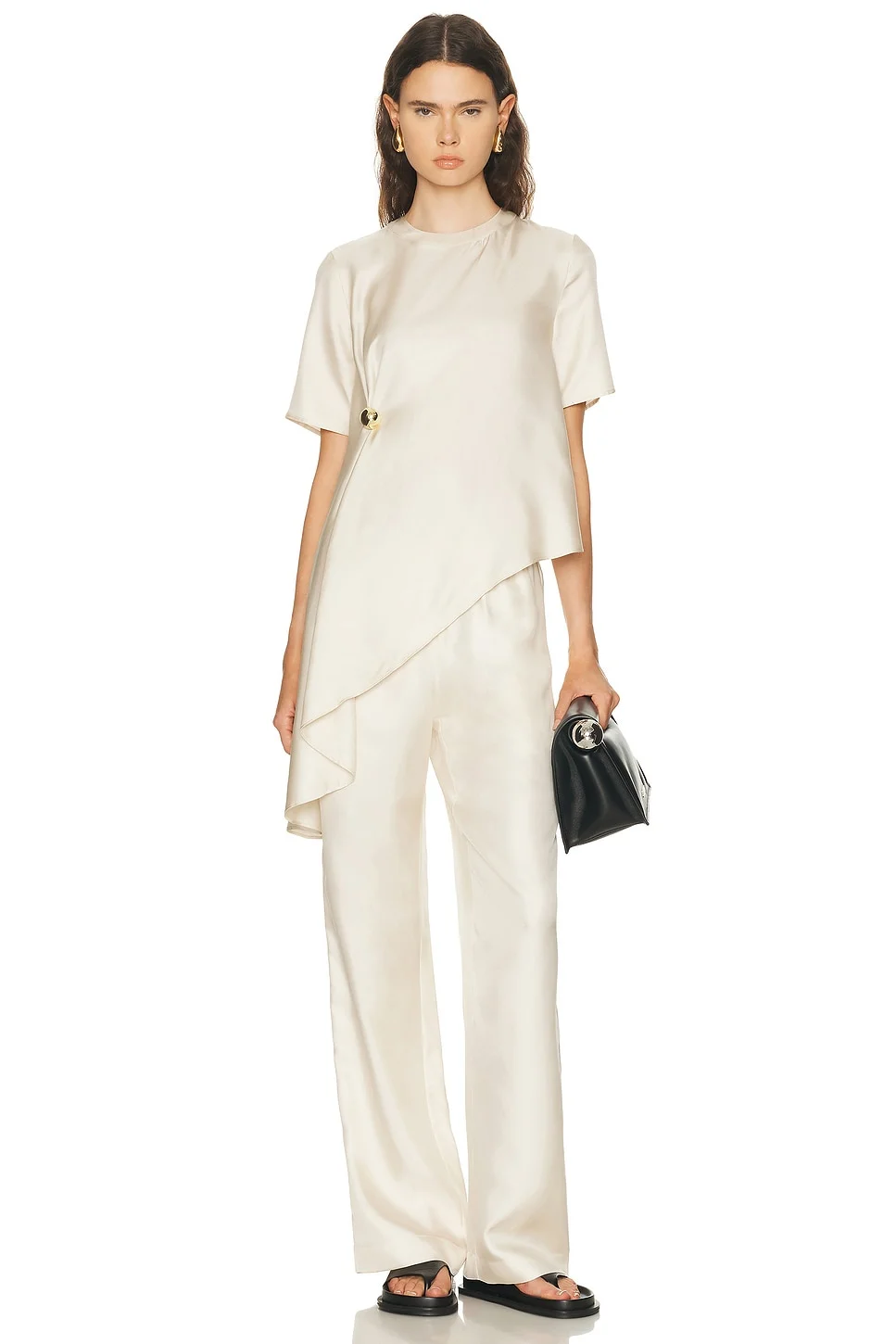 Details - Self: 100% silk - Contrast Fabric: 100% copper - Hand wash - Hidden back zip closure - Front gold-tone hardware accent - Asymmetrical hem - Lightweight satin fabric - Item not sold as a set - Made in Italy - Our Style No. LSUD-WS142 - Manufacturer Style No. MADEA