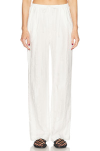 Details - 60% silk, 40% cotton - Made in China - Hand wash - Drawstring closure and elastic waistband - Side slit pockets - Linen fabric with frayed detail throughout - Item not sold as a set - Our Style No. LSUD-WP70 - Manufacturer Style No. SOLER