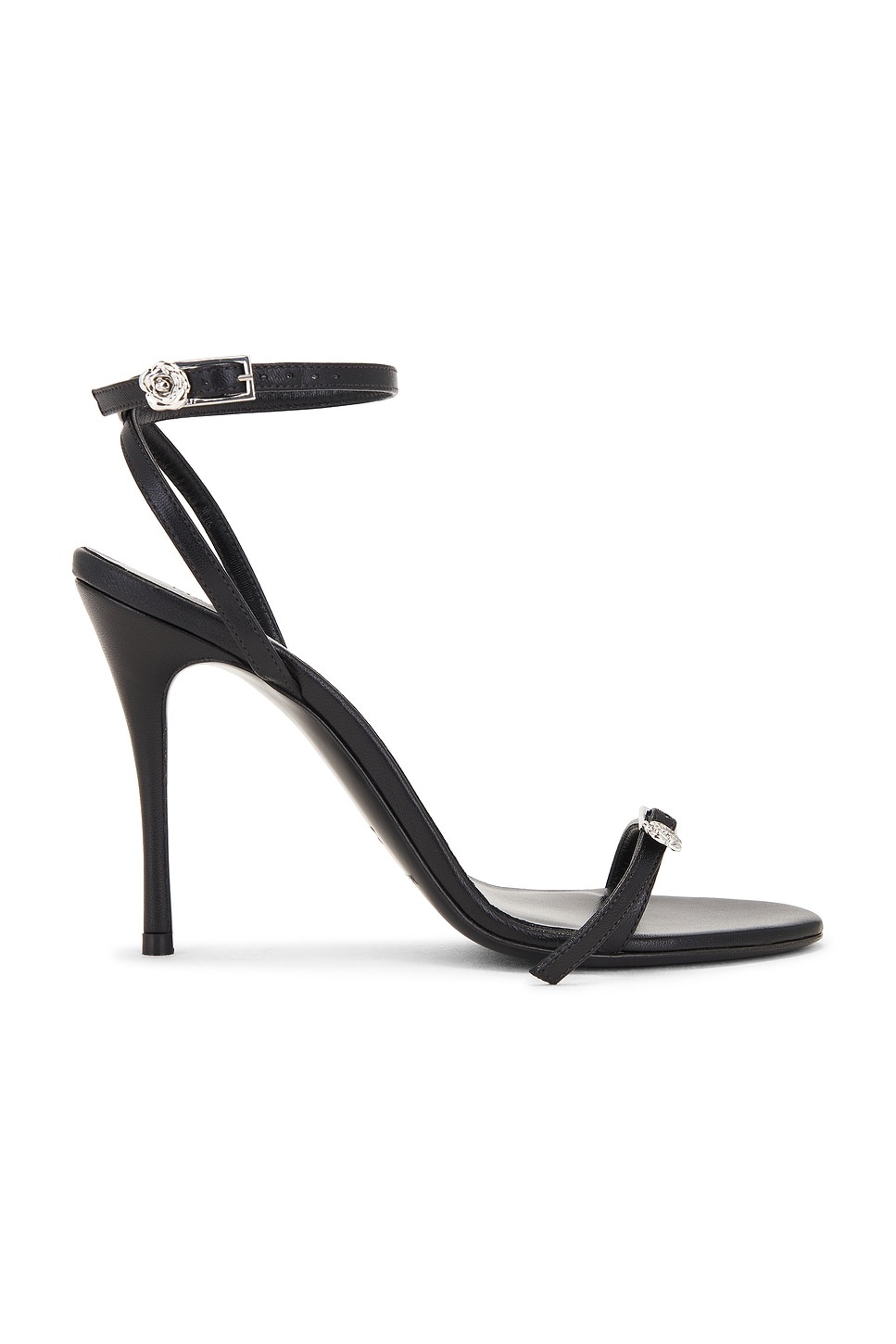 Details - Kid leather upper and calf leather sole - Made in Italy - Ankle buckle closure - Leather footbed and lining - Strap vamp with buckle closure - Almond toe with stiletto heel - Approx 95mm/ 3.75 inch heel - Our Style No. MAGF-WZ39 - Manufacturer Style No. 519924