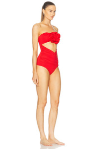 Flower appliqué strapless cutout swimsuit in red