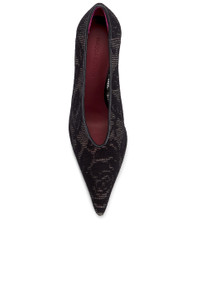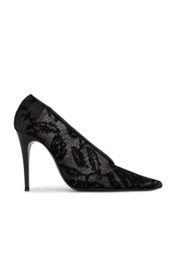 Details - Leather and textile upper with leather sole - Made in Italy - Slip-on styling - Sharp vamp design - Pointed toe - Leather footbed - Approx 100mm/ 4 inch heel - Our Style No. MAGF-WZ52 - Manufacturer Style No. 602525