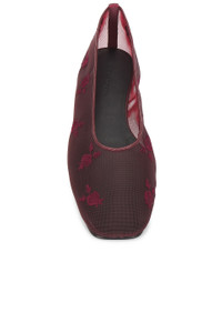 Mesh ballet flats in burgundy embroidery