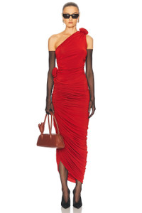 Details - 82% viscose, 11% polyamide, 6% elastane - Made in Poland - Dry clean only - Pull-on styling - One-shoulder design with 3D floral accent - Slinky jersey fabric with ruching detail - Item not sold as a set - Our Style No. MAGF-WS99 - Manufacturer Style No. 164525