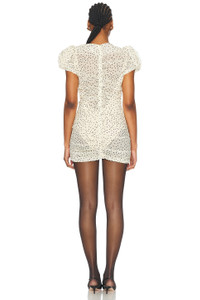 Ruched polka-dot silk-blend chiffon mini dress Cream