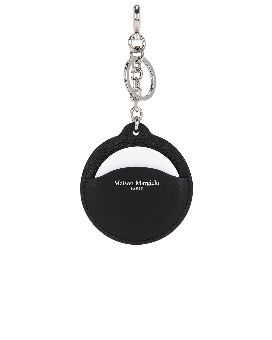 Details - Calf leather exterior with silver-tone polished brass hardware - Metal D-ring closure - Double-tag key ring design with embossed logo tab and signature four-stitches at back - Card-holder integrated style combining function and signature - Please note: Apple Air Tag not included with purchase - Measures approx 3.15" W x 3.15" H - Made in Italy - Our Style No. MMAR-WA43 - Manufacturer Style No. SA2UA0011-P4745-T8013