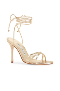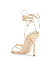 Details - Metallic leather upper with leather sole - Handmade in Italy - Ankle wrap with tie closure - Strappy crossover vamp - Metallic leather lining - Almond toe with stiletto heel - Approx 105mm/ 4.15 inch heel - Our Style No. MNIF-WZ302 - Manufacturer Style No. 223-1551