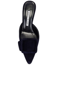 Black Suede Buckle Mules