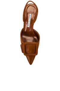 Details - Nappa leather with leather sole - Made in Italy - Approx 65mm/ 2.5 inch heel - Slingback elastic strap - Buckle detail on front - Pointy toe - Our Style No. MNIF-WZ197 - Manufacturer Style No. 219-0254