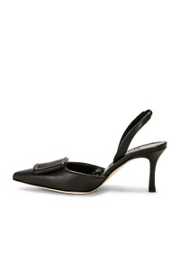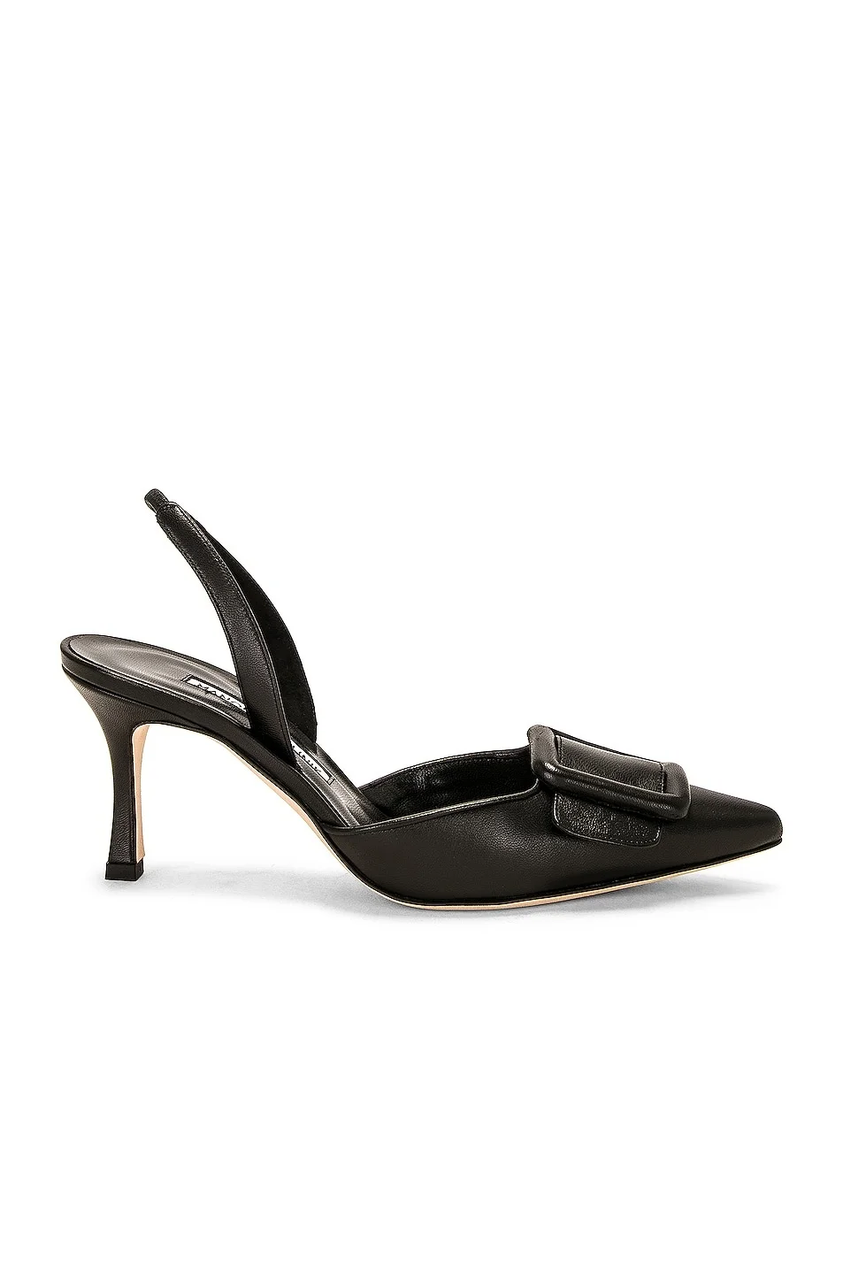 Details - Leather upper with leather sole - Made in Italy - Sling-back styling - Leather footbed and lining - Oversized leather buckle at vamp - Pointed toe with spool heel - Approx 70mm/ 2.75 inch heel - Our Style No. MNIF-WZ391 - Manufacturer Style No. 219-0254