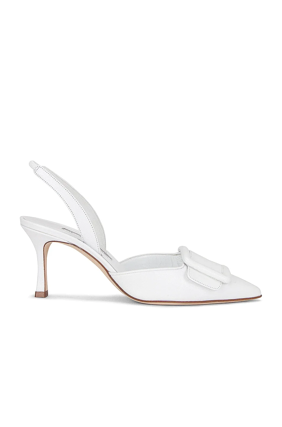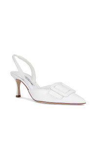 Details - Leather upper and sole - Made in Italy - Approx 65mm/ 2.5 inch heel - Buckle detail on front - Slingback elastic strap - Pointy toe - Our Style No. MNIF-WZ205 - Manufacturer Style No. 219-0254
