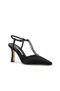 Details - Satin upper with leather sole - Ankle buckle closure - Leather lining - Crystal-embellished T-strap - Pointed-toe with stiletto heel - Approx 90mm/ 3.5 inch heel - Made in Italy - Our Style No. MNIF-WZ510 - Manufacturer Style No. 225-1841