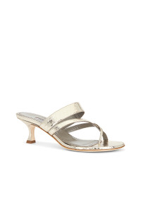 Details - Metallic leather upper with leather sole - Open toe with delicate perforated detailing - Adjustable ankle strap with gold-tone buckle closure - Mid-height covered heel for elegant lift - Lightly cushioned leather footbed - Heel measures approx 50mm (2 inches) - Made in Italy - Our Style No. MNIF-WZ523 - Manufacturer Style No. 325-3094