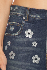 Details - Self 1: 100% cotton - Self 2: 100% polyester - Lining: 65% polyester, 35% cotton - Made in Albania - Hand wash - Button fly closure - 5-pocket design - Floral sequin design at front and back - Rigid denim fabric with distressing detail - Item not sold as a set - Our Style No. MJAC-WF2 - Manufacturer Style No. 2S5RBT047D08