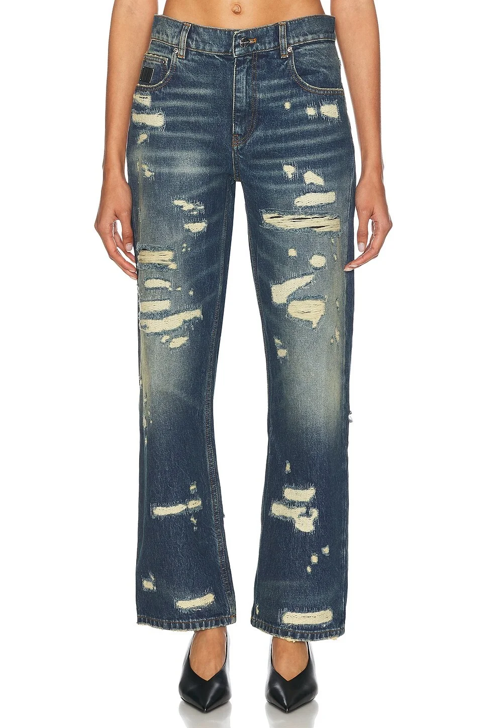 Details - 100% cotton - Made in Albania - Machine wash - Zip fly with button closure - 5-pocket design - Fading and distressed detail throughout - Item not sold as a set - Our Style No. MJAC-WJ1 - Manufacturer Style No. 2F4RBT001D15