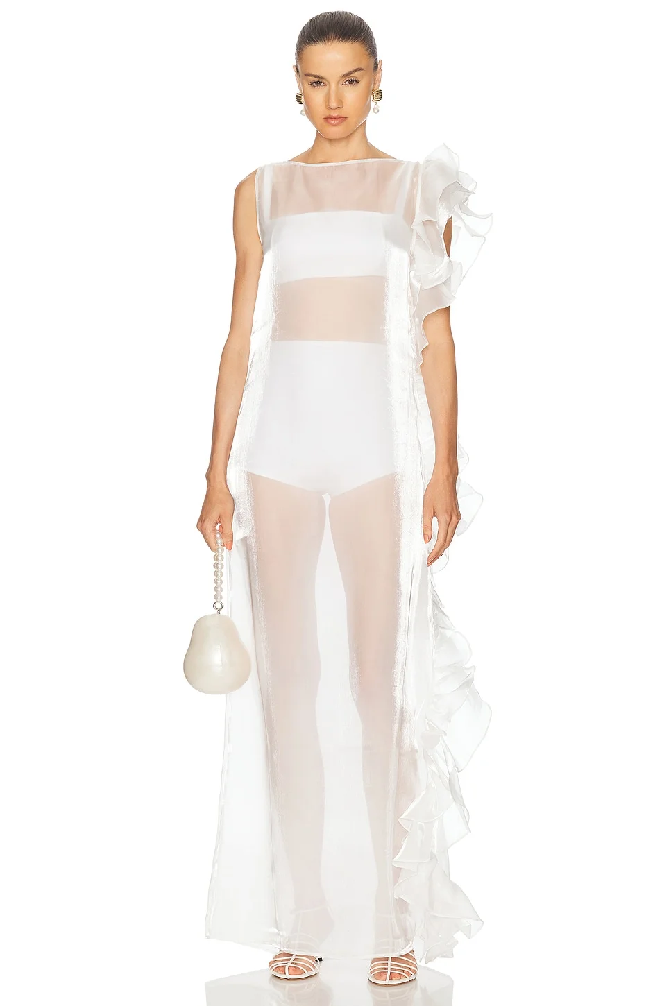 Details - 100% polyester - Made in India - Dry clean only - Unlined - Pull-on styling - Chiffon fabric with ruffle accent - Please note: Two-piece undergarments are included - Our Style No. MSGF-WD5 - Manufacturer Style No. MG-SS25-113
