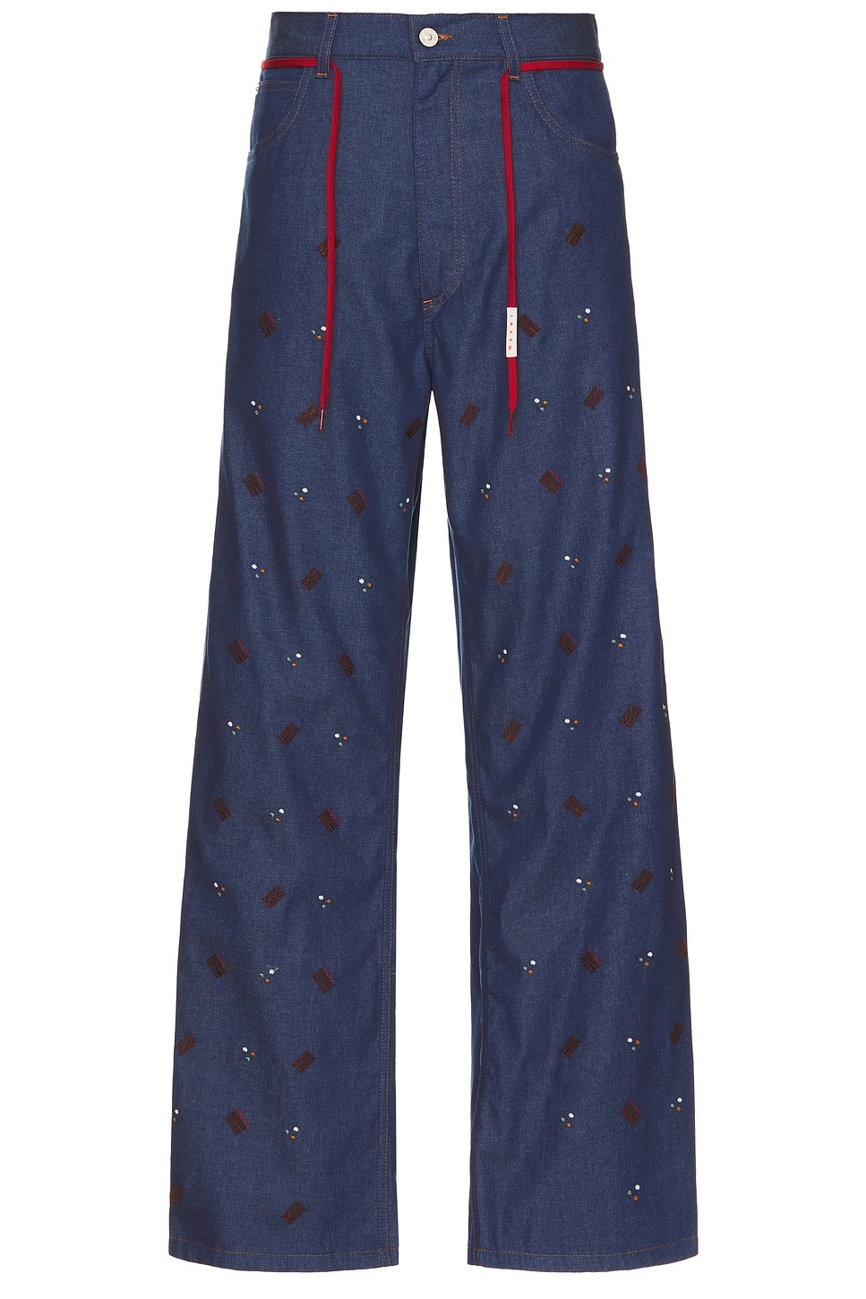 Details - 100% cotton - Made in Italy - Dry clean only - Zip fly and button closure with optional waist tie - 5-pocket design - Midweight denim fabric with embroidered detail throughout - Our Style No. MARN-MJ9 - Manufacturer Style No. PUJU0019S2-USCX58-RIB64