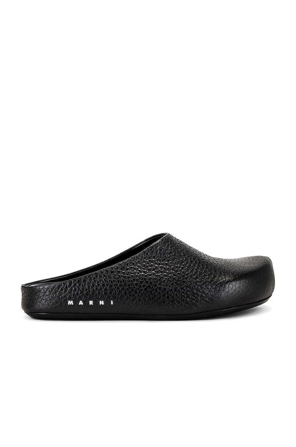 Details - Grained calfskin upper with rubber sole - Made in Italy - Slip-on styling - Contoured leather and suede footbed - Contrasting silver logo on side - Round toe - Our Style No. MARN-MZ18 - Manufacturer Style No. SBMR001400