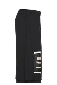 BLACK COTTON 3/4 TROUSERS WITH PRINTED QUOTES
