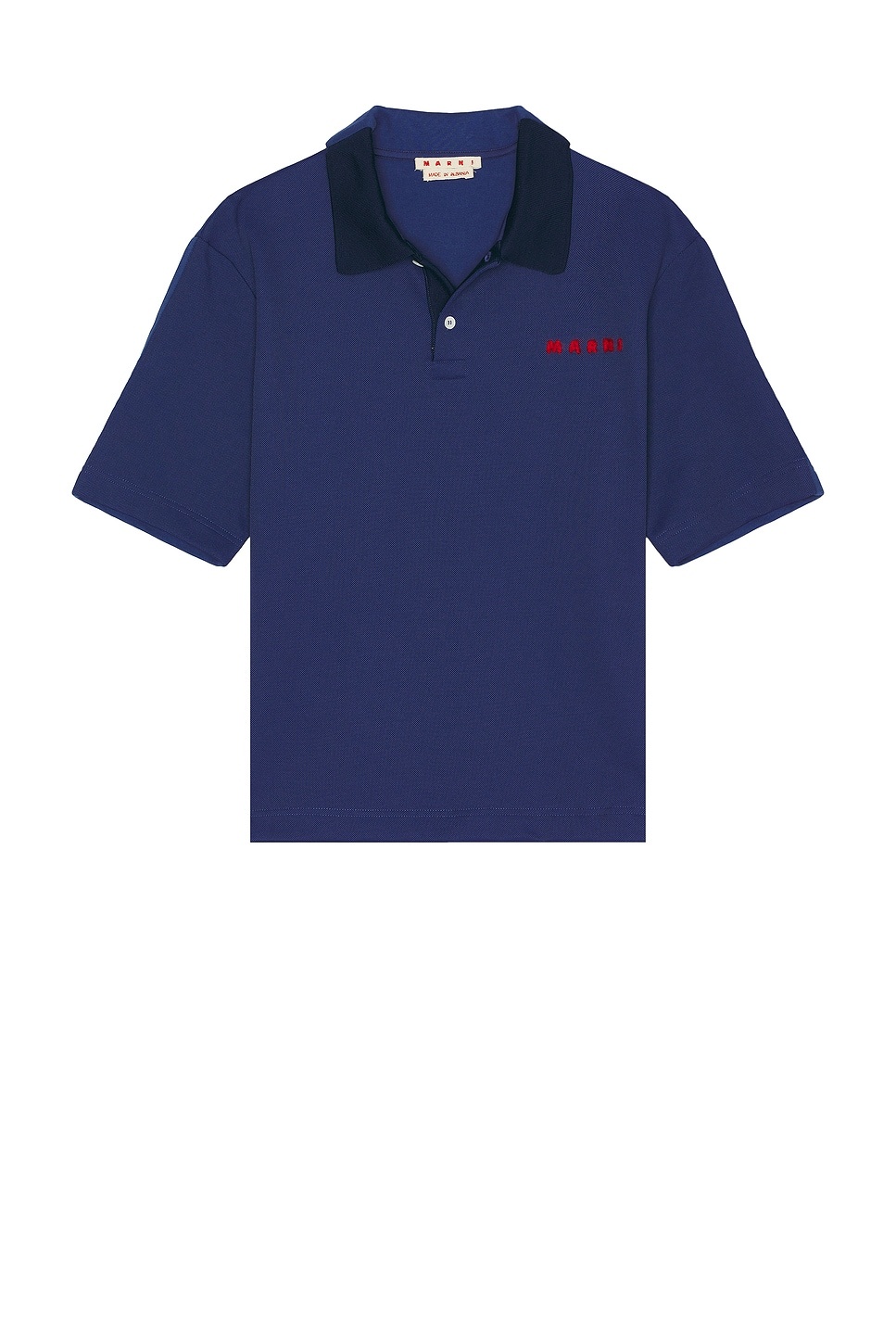 Details - Self: 52% cotton, 43% polyamide, 5% elastane - Contrast Fabric 1: 100% cotton - Contrast Fabric 2: 100% mohair - Dry clean only - Partial front button closure - Embroidered Marni logo at chest - Midweight oxford fabric - Made in Albania - Our Style No. MARN-MS120 - Manufacturer Style No. POMU0045LS-UTC492-00B56