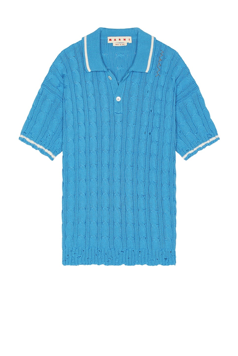 Details - 100% cotton - Made in Italy - Dry clean only - Partial front button closure - Knit fabric with ribbed trim - Our Style No. MARN-MS109 - Manufacturer Style No. POMG0071EQ-UFC656-00B52
