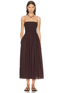 shirred bodice midi dress