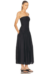 Details - 100% organic cotton - Machine wash - Partially lined - Hidden side zipper closure - Side slit pockets - Poplin fabric with ruching at bodice - Made in India - Our Style No. MTEF-WD125 - Manufacturer Style No. SDWDR