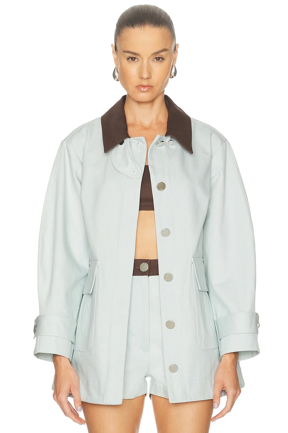 Details - 100% cotton - Made in USA - Dry clean - Front covered button-down closure - Dual flap-pocket details - Midweight twill textile - Item not sold as set - Our Style No. MUCF-WO6 - Manufacturer Style No. 26SS6013