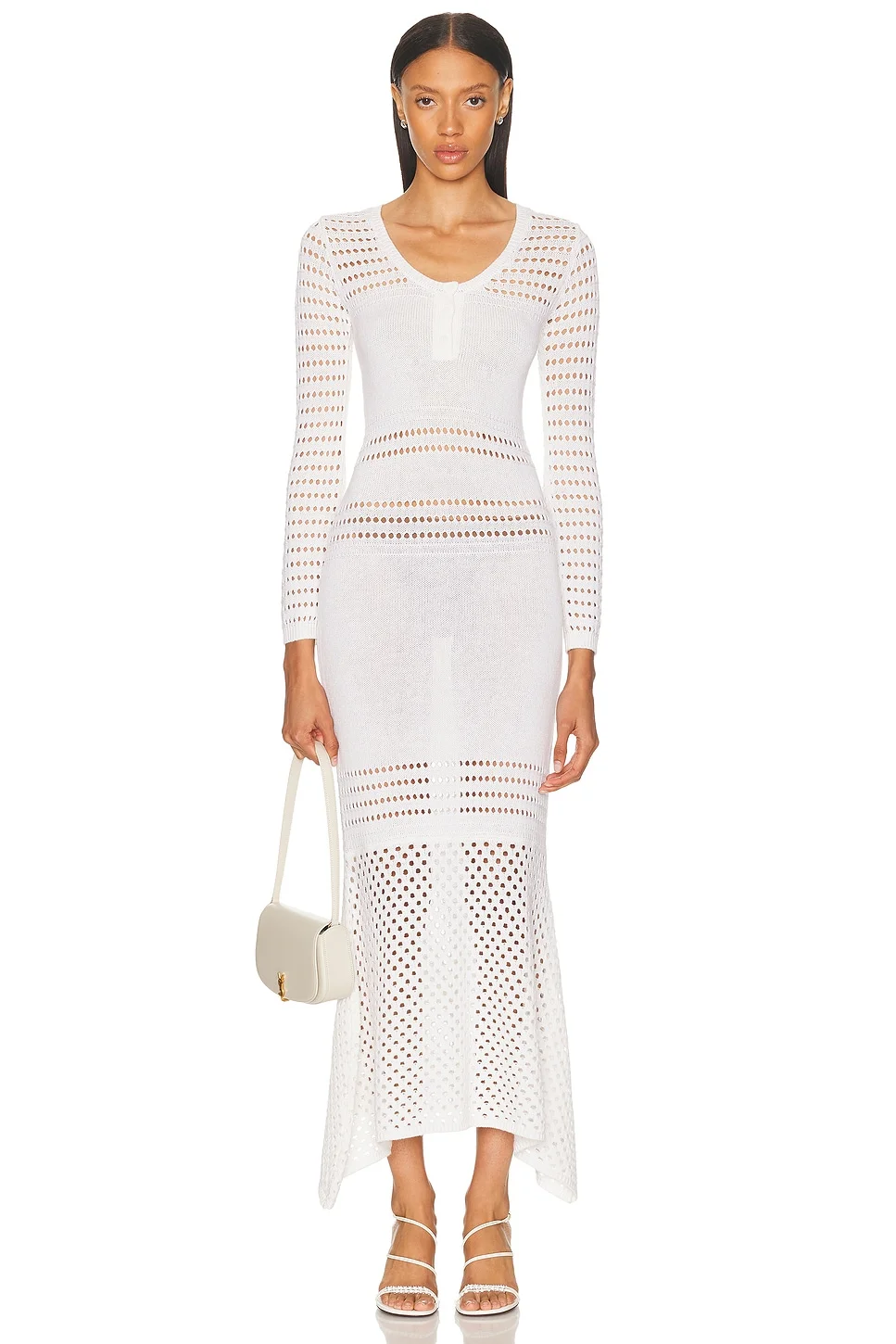 Striped Mesh Handkerchief Midi Dress
