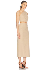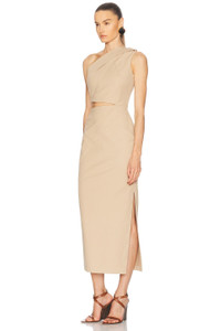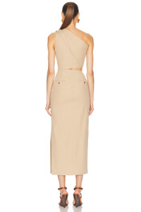 Details - Self: 94% cotton, 6% elastane - Lining: 95% acetate, 5% elastane - Made in Italy - Hand wash - Partially lined - Hidden side zipper closure - Back welt pockets with button closures - One-shoulder styling - Twill fabric with cut-out detail at waist - Our Style No. MAXM-WD30 - Manufacturer Style No. 2511221233600