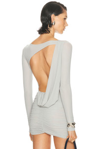 Details - 77% polyamide, 23% elastane - Made in Colombia - Hand wash - Fully lined - Garment is made with a semi-sheer fabric, undergarments can show through - Pull on styling - Slinky jersey knit textile - Open back with drape detail - Our Style No. MAYF-WS21 - Manufacturer Style No. BD-258-GTO