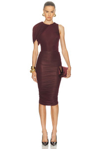 Dasos Ruched Stretch-mesh Midi Skirt