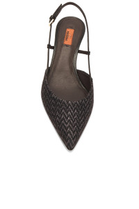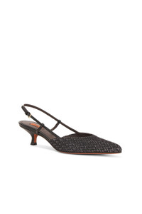 Details - Lurex fabric with lambskin accents and leather sole - Adjustable slingback strap - Signature Missoni wave pattern - Luxe lambskin detailing - Pointed toe - Kitten heel - Approx 85mm / 3.35 inch heel - Made in Italy - Our Style No. MSON-WZ45 - Manufacturer Style No. MWF129_003