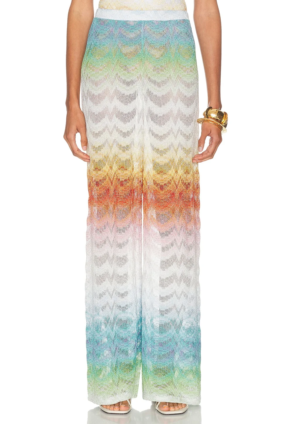 Details - 88% viscose, 12% metallic fibers - Made in Italy - Dry clean - Pull-on styling - Garment is intentionally sheer, undergarments will show through. - Please note undergarment not included - Metallic knit fabric - Item not sold as a set - Our Style No. MSON-WP33 - Manufacturer Style No. MC25SI01