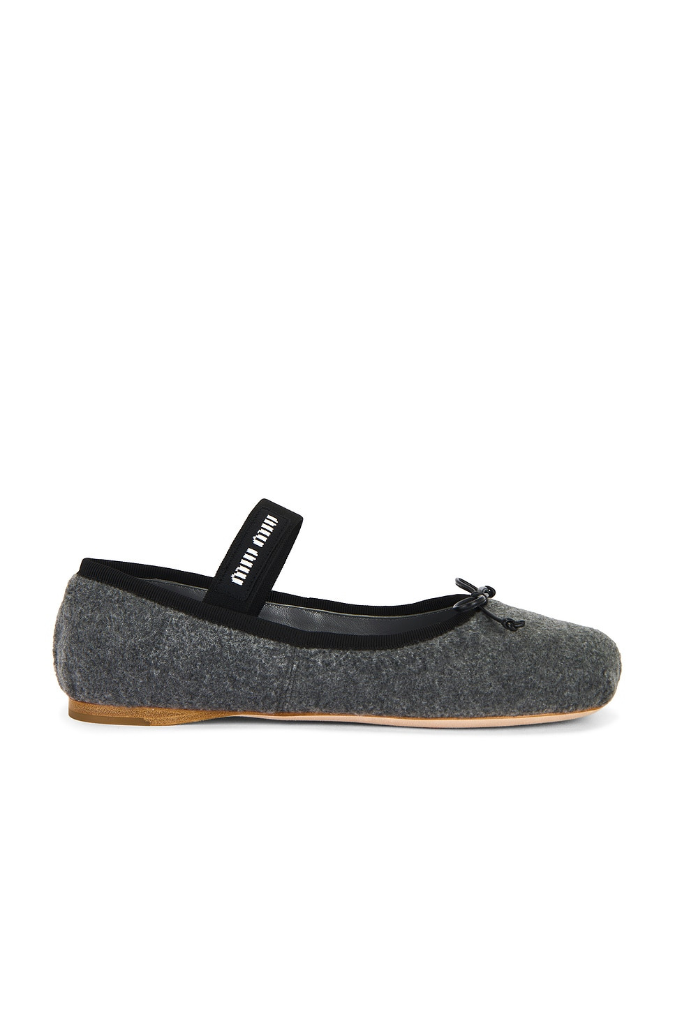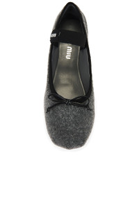 Details - Felted upper with leather sole - Slip-on styling - Cushioned leather footbed and lining - Elasticized strap with logo detailing - Bow detailing at vamp - Rounded toe - This item is not available for international export - Made in Italy - Our Style No. MIUF-WZ210 - Manufacturer Style No. 5F794D