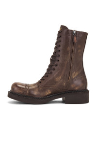 Details - Leather upper with rubber sole - Made in Italy - Adjustable buckle strap closures - Lace-up front - Leather footbed and lining - Round toe with block heel - Approx 35mm/ 1.35 inch heel - Approx 381mm/ 15 inch shaft - Shaft measures approx 40 cm in circumference - This item is not available for international export - Our Style No. MIUF-WZ180 - Manufacturer Style No. 5U316E