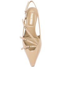 Details - Patent leather upper with leather sole - Made in Italy - Ankle buckle closure with buckled straps throughout - Leather footbed and lining - Pointed toe with kitten heel - Approx 65mm/ 2.5 inch heel - Our Style No. MIUF-WZ133 - Manufacturer Style No. 5I013E FM055