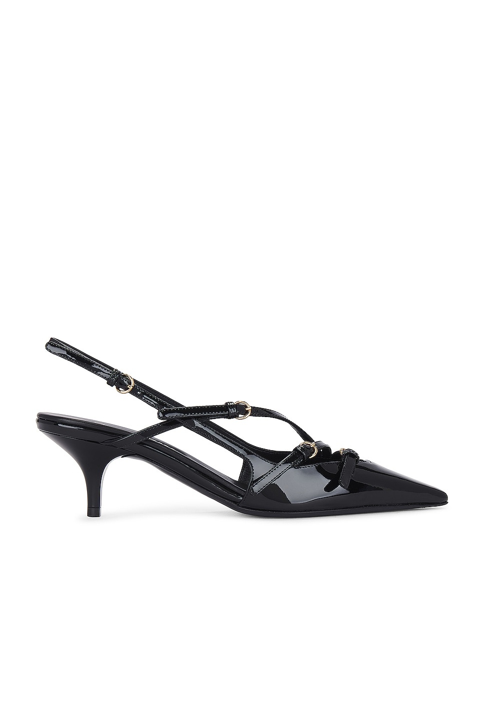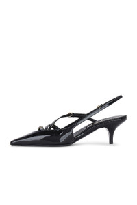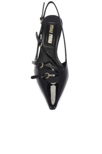Details - Patent leather upper with leather sole - Made in Italy - Sling-back styling with buckle closure - Pointed toe - Strappy vamp with buckle details - Approx 57mm/ 2.25 inch heel - Our Style No. MIUF-WZ131 - Manufacturer Style No. 5I013E FM055