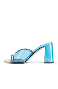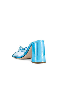 Details - Plexiglass and metallic leather upper with leather sole - Made in Italy - Transparent vamp - Metallic leather footbed - Rounded square toe with metallic block heel - Approx 82.5mm/ 3.25 inch heel - Our Style No. MIUF-WZ105 - Manufacturer Style No. 5XX578F-0853LLU
