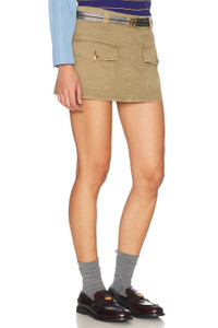 Details - Self: 100% cotton - Contrast Fabric: 61% polyamide, 39% polyester - Made in Italy - Hand wash - Unlined - Hidden side zip closure - Front button pockets and adjustable belt with gold-tone logo buckle closure - Midweight twill fabric with back logo detailing - Item not sold as a set - This item is not available for international export - Our Style No. MIUF-WQ77 - Manufacturer Style No. MG2390