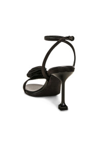Details - Satin upper with leather sole - Made in Italy - Ankle buckle closure - Leather footbed and lining - Satin rosette at vamp - Almond toe with stiletto heel - Approx 83mm/ 3.25 inch heel - Our Style No. MIUF-WZ127 - Manufacturer Style No. 5X002E F085