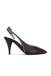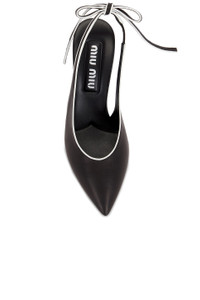 Details - Nappa upper with leather sole - Made in Italy - Slingback styling with bow detail - Quilter leather footbed - Pointed toe with stiletto heel - Approx 85mm/ 3.3 inch heel - This item is not available for international export - Our Style No. MIUF-WZ191 - Manufacturer Style No. 5I430E-F085