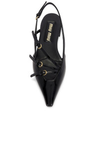 Details - Patent leather finish - Slingback ballerina flats - Leather-covered heel - Leather and rubber sole - Leather insole with screen-printed logo on the insole - Upper with buckled straps - Approx. 10mm / 0.4 inch heel - This item is not available for international export - Made in Italy - Our Style No. MIUF-WZ209 - Manufacturer Style No. 5F476E