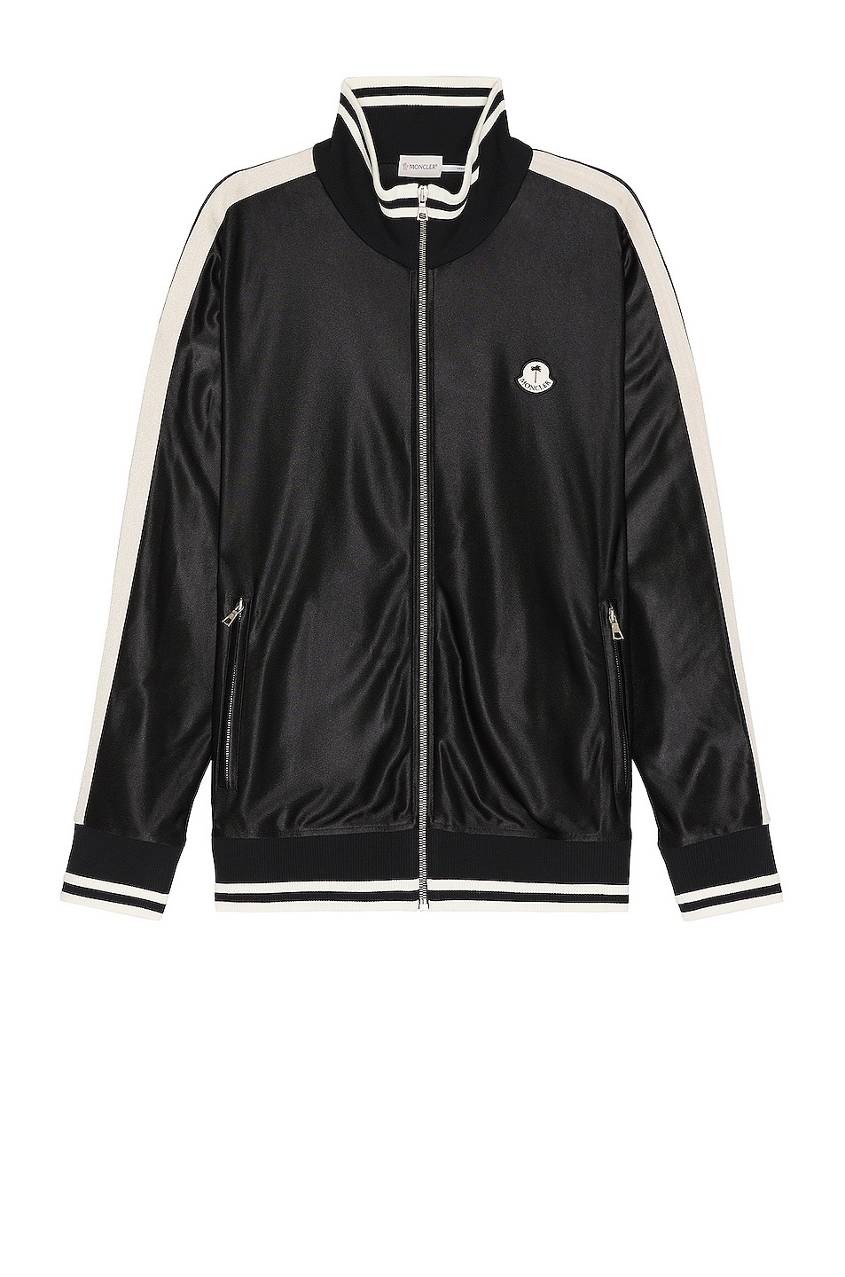 Details - Moncler Genius 8 Moncler x Palm Angels collaboration - 100% polyester - Made in Albania - Machine wash - Front zip closure - Front zip pockets - Sheen finish with contrast rib knit trim - Our Style No. MGEF-MK7 - Manufacturer Style No. 8G00002 - M2522