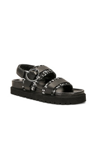 Details - Leather and textile upper with manmade sole - Made in Italy - Adjustable velcro back strap with debossed tonal Moncler logo - Contoured leather footbed - Leather lining - Signature bell buckle strap with tweed fabric underlay - Our Style No. MONC-WZ78 - Manufacturer Style No. 4L00010I209BM3538
