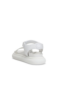 Details - Leather and nylon upper with rubber sole - Made in Italy - Ankle strap with velcro closure - Moncler logo detail at straps - Molded leather footbed - Rubber Moncler logo patch at heel - Approx 44mm/ 1.75 inch platform - Our Style No. MONC-WZ40 - Manufacturer Style No. H109B 4L00110 - M1698