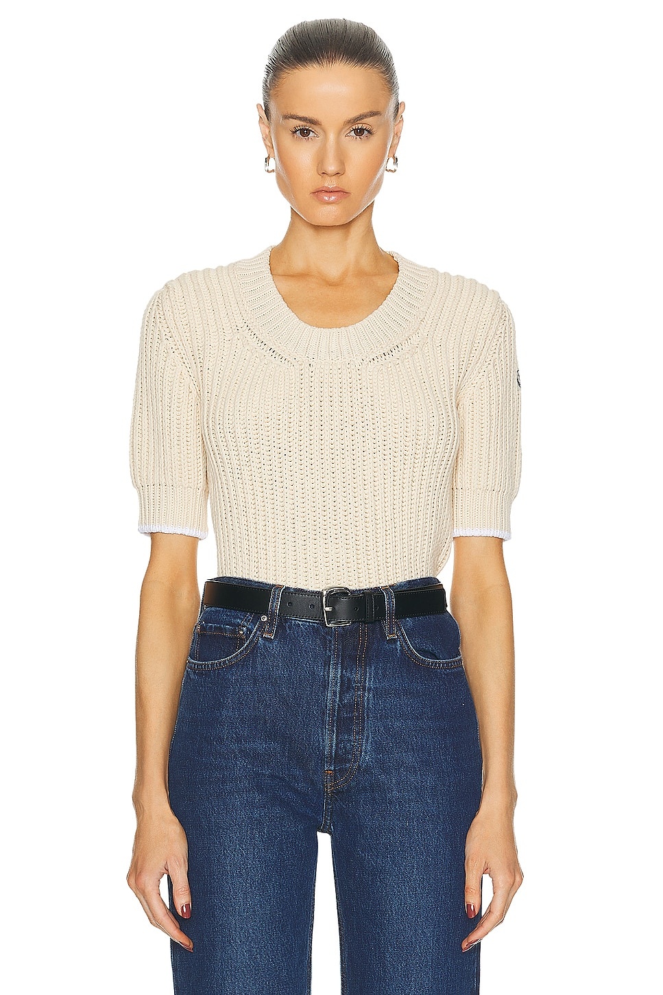 Details - 70% cotton, 30% polyamide - Made in Italy - Dry clean only - Moncler sleeve patch - Heavyweight knit fabric - Our Style No. MONC-WK44 - Manufacturer Style No. 9C00014 - M4086