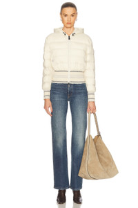 Details - Self: 85% polyamide, 15% elastane - Lining: 100% polyester - Padding: 100% polyester - Made in Italy - Hand wash - Exposed front zipper closure - Drawcord at hoodie - Side seam pockets with button closure - Ripstop padding with padding - Our Style No. MOBF-WO68 - Manufacturer Style No. K1098-1A00014-595FK